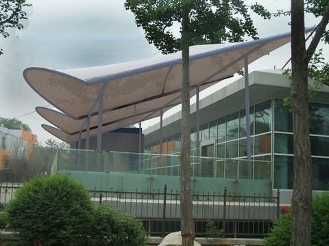 除了一般雨蓬不可比擬的實(shí)用、耐用、遮風(fēng)擋雨的功能外,膜結(jié)構(gòu)雨蓬更是一座雕塑,一件藝術(shù)品,給人美的視覺享受。其柔美,其曲線,其剛?cè)岵?jì),其豐富造型,其潔白無(wú)瑕,讓人眼前一亮,回味悠長(zhǎng)。